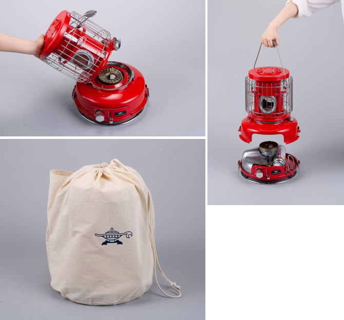 ■カラー:R(レッド)、Y(イエロー) ■サイズ:奥行33.5×幅32×高さ39cm ■連続燃焼時間:弱/約4時間20分、強/約1時間40分 ■本体重量(kg):5.7 ■付属品:収納袋、コンセプトブック ■特徴:ブルーフレームのフォルムを継承したポータブルガスストーブ。