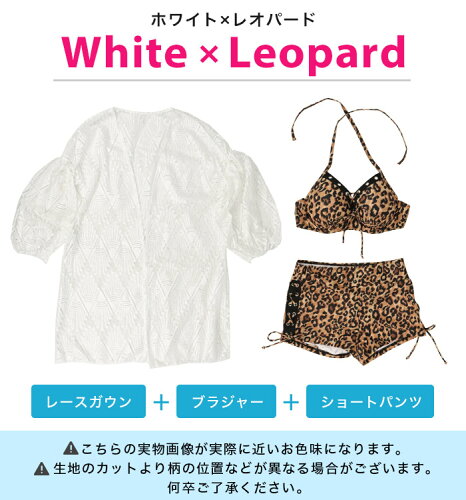 水着 レディース ビキニ レオパード 体型カバー 3点セット レースガウン セット セクシー ヒョウ柄 ワイヤー ブラ レースアップ ショートパンツ トレンド 新作水着 ママ おしゃれ 個性派 通販